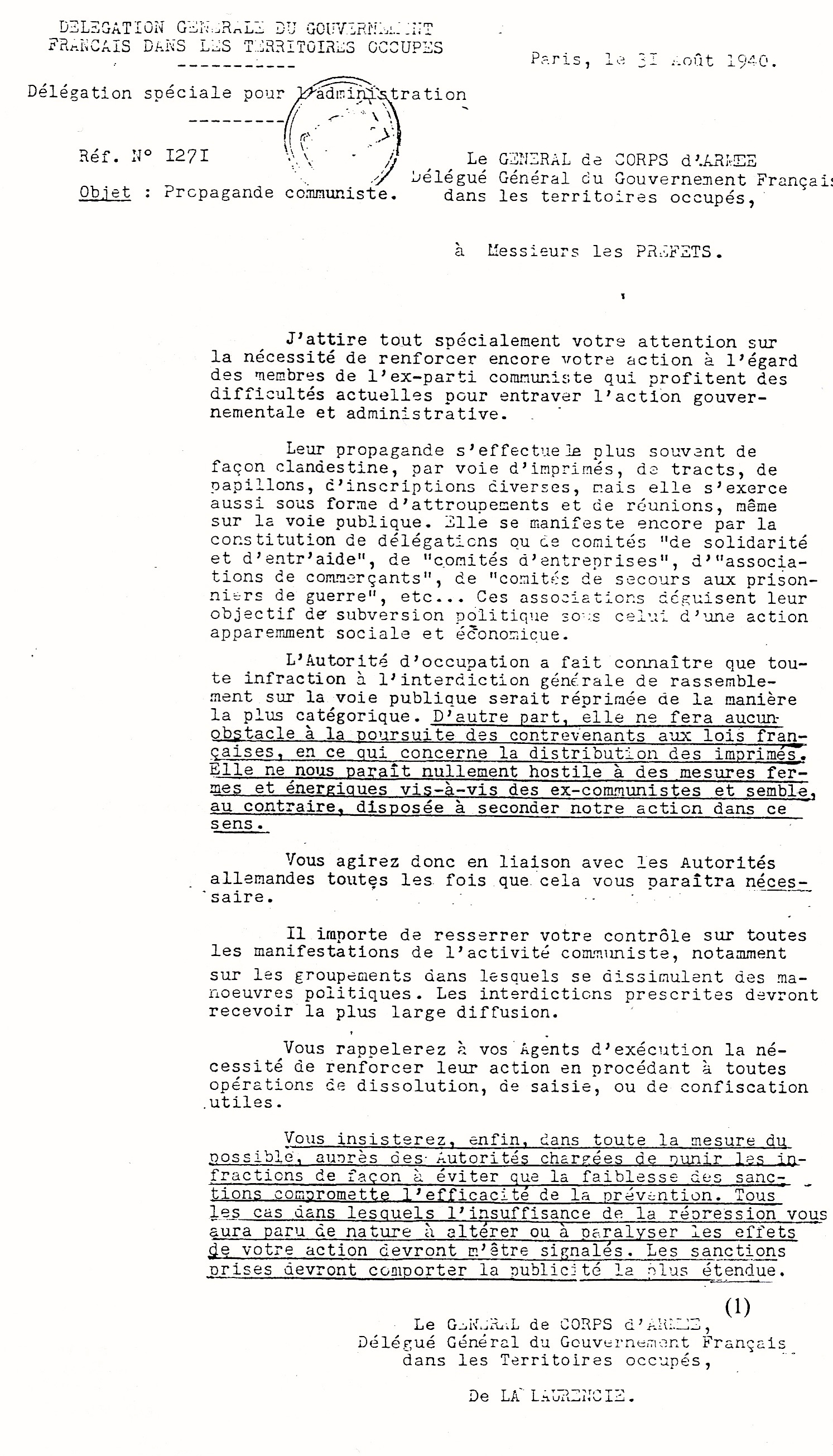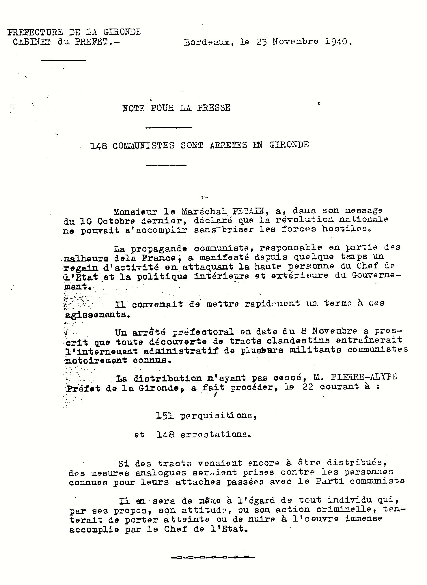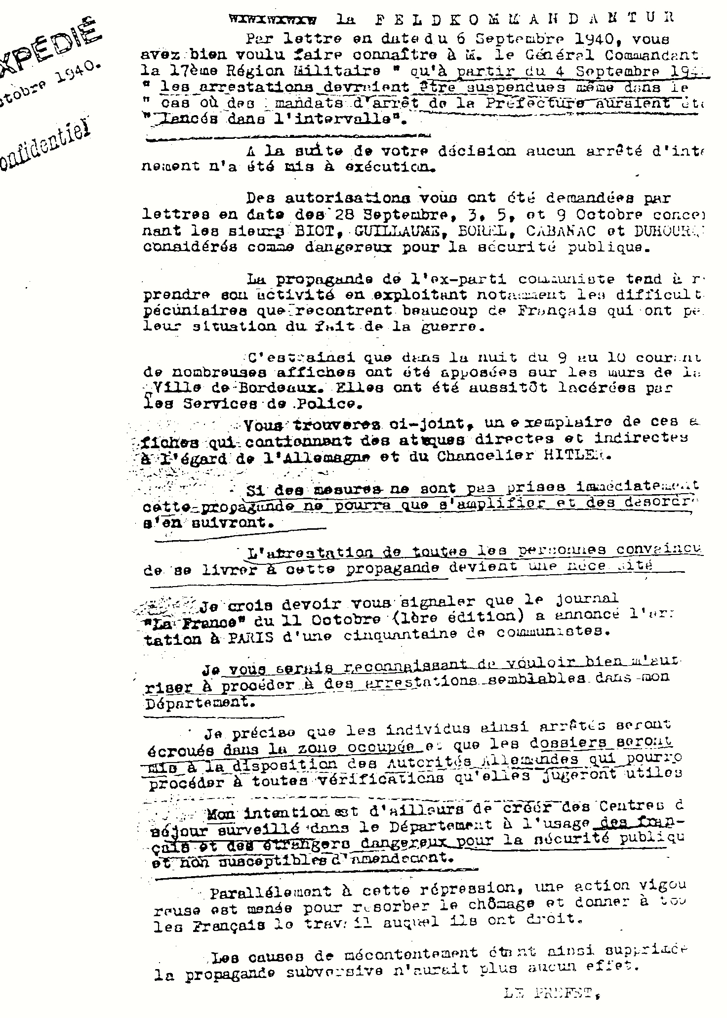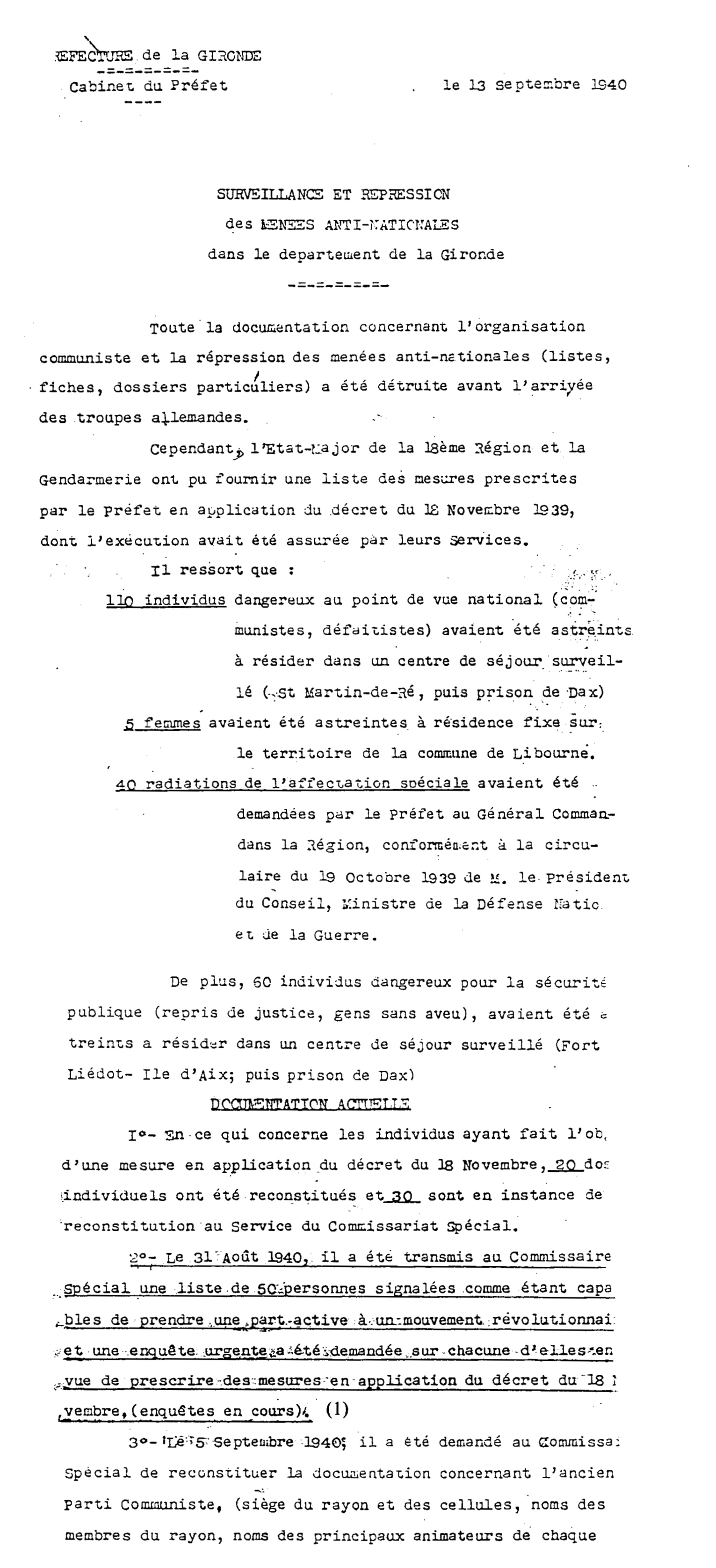 Note du 21 novembre 1940 pages 1 et 2-AD33
