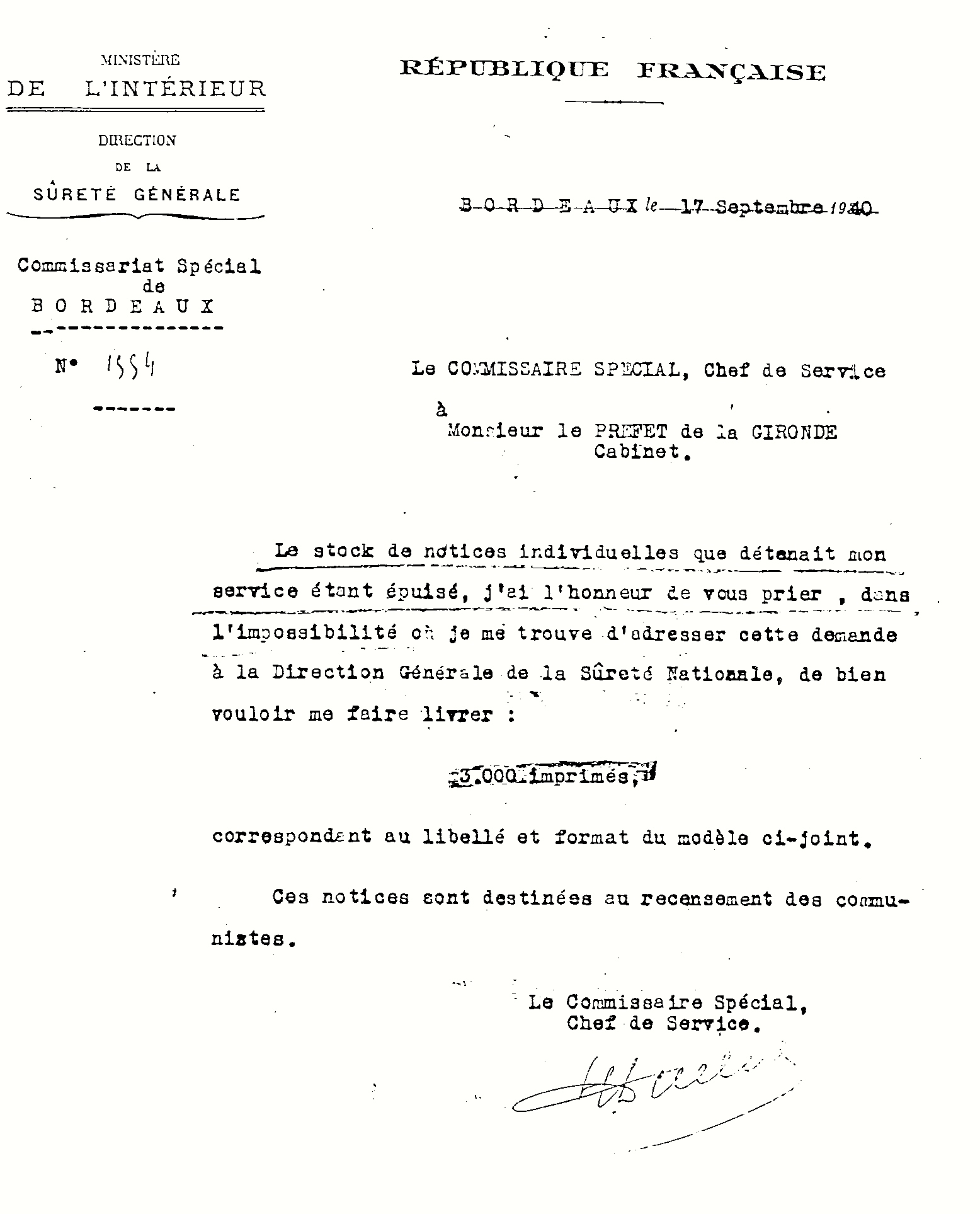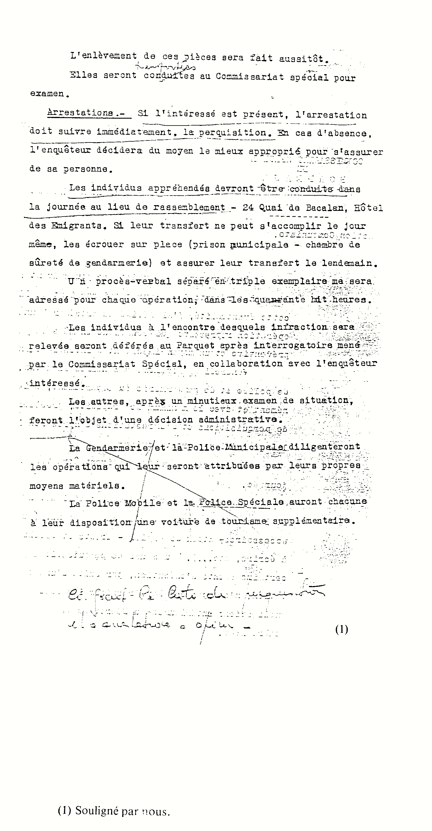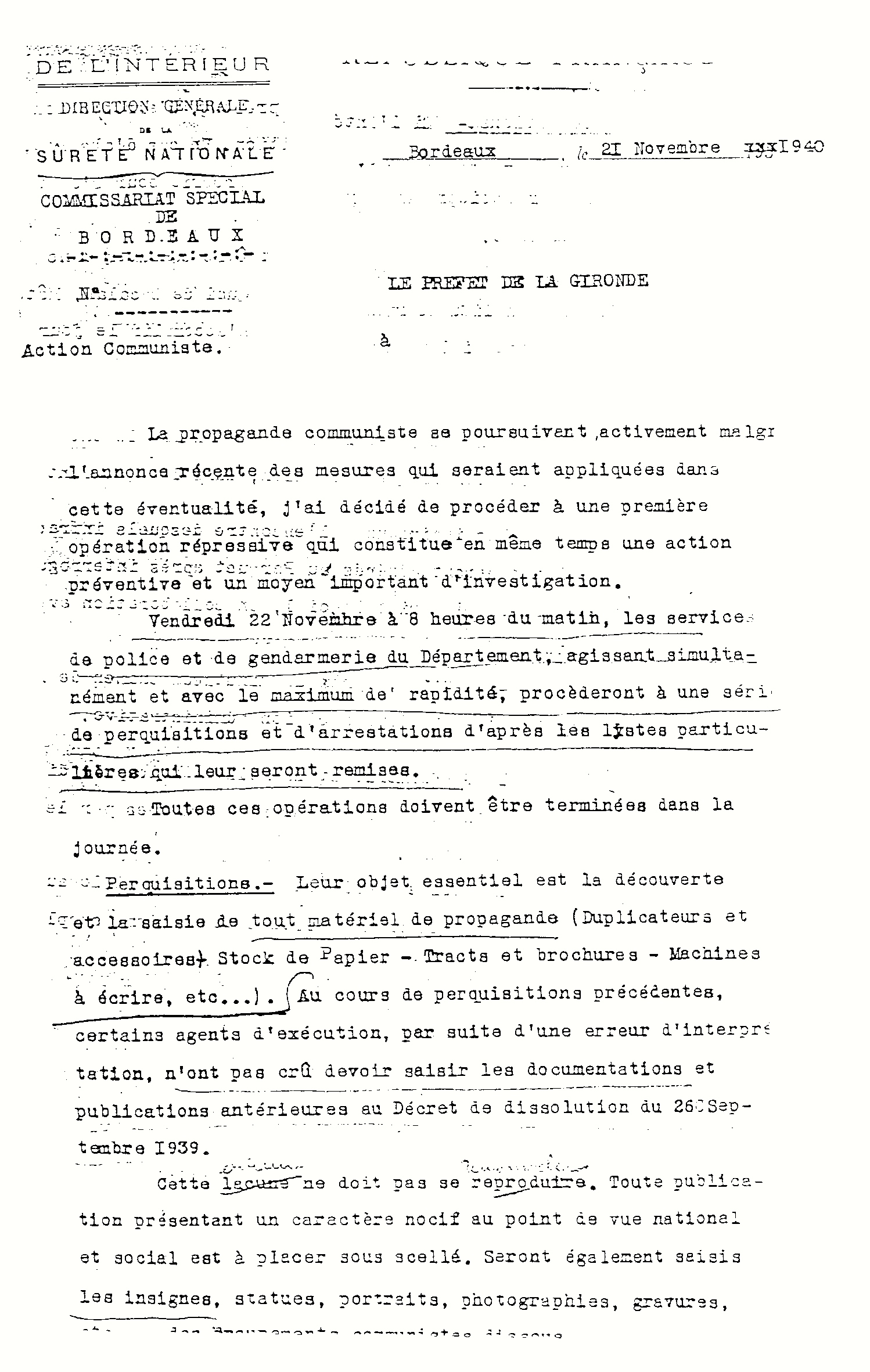 "L’opération répressive"- dixit le Préfet- est prête. Elle aura lieu le 22 novembre 1940 :