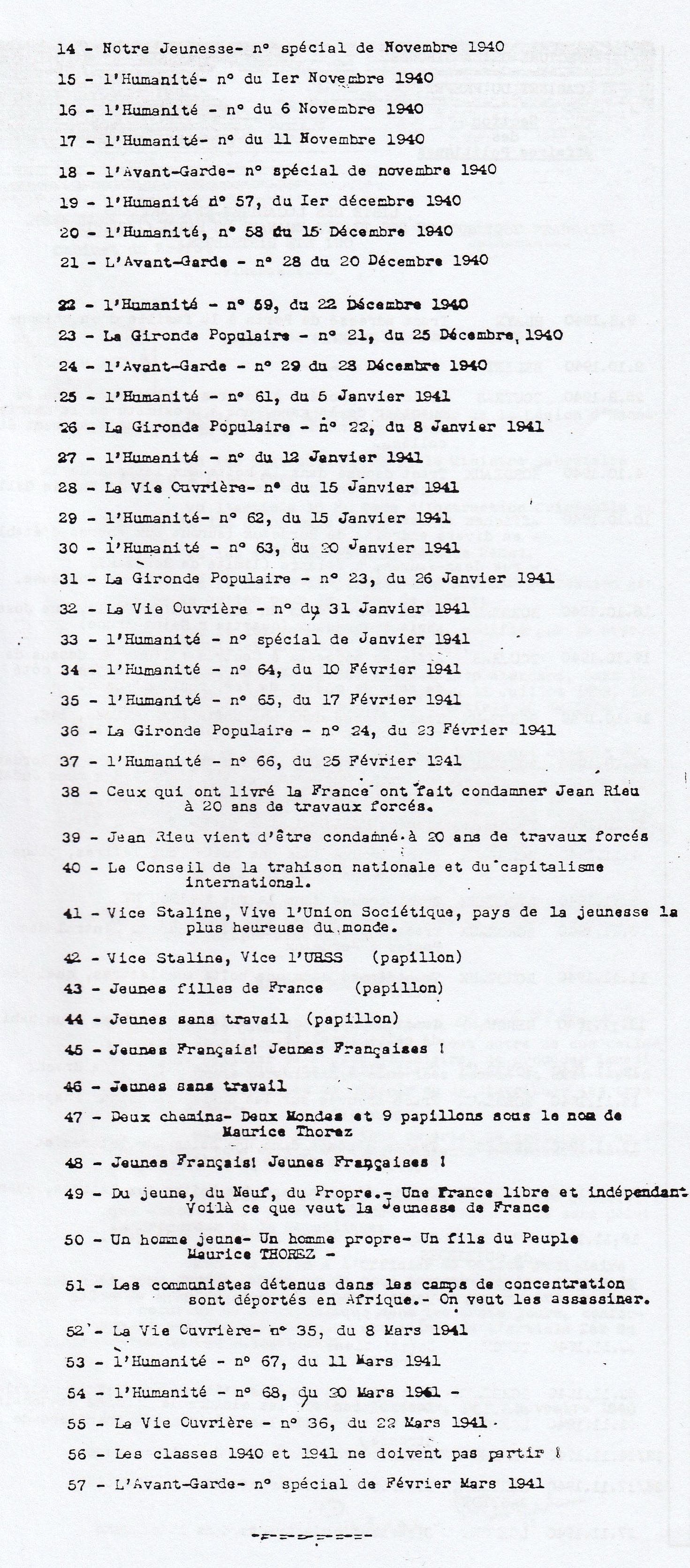 La propagande communiste continue, l’idée de résistance s’affirme, la répression se poursuit :