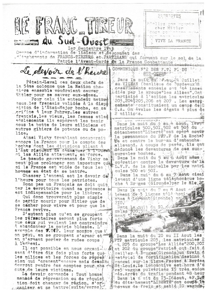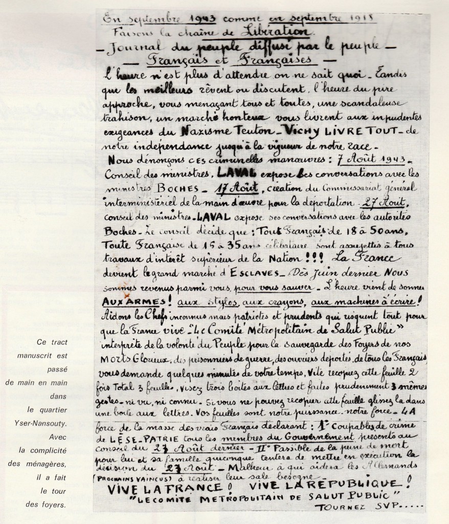 Les groupes et réseaux de résistance publiaient des journaux et des tracts, distribués clandestinement, pour tenter de contrer la propagande du monde de la collaboration et des nazis.